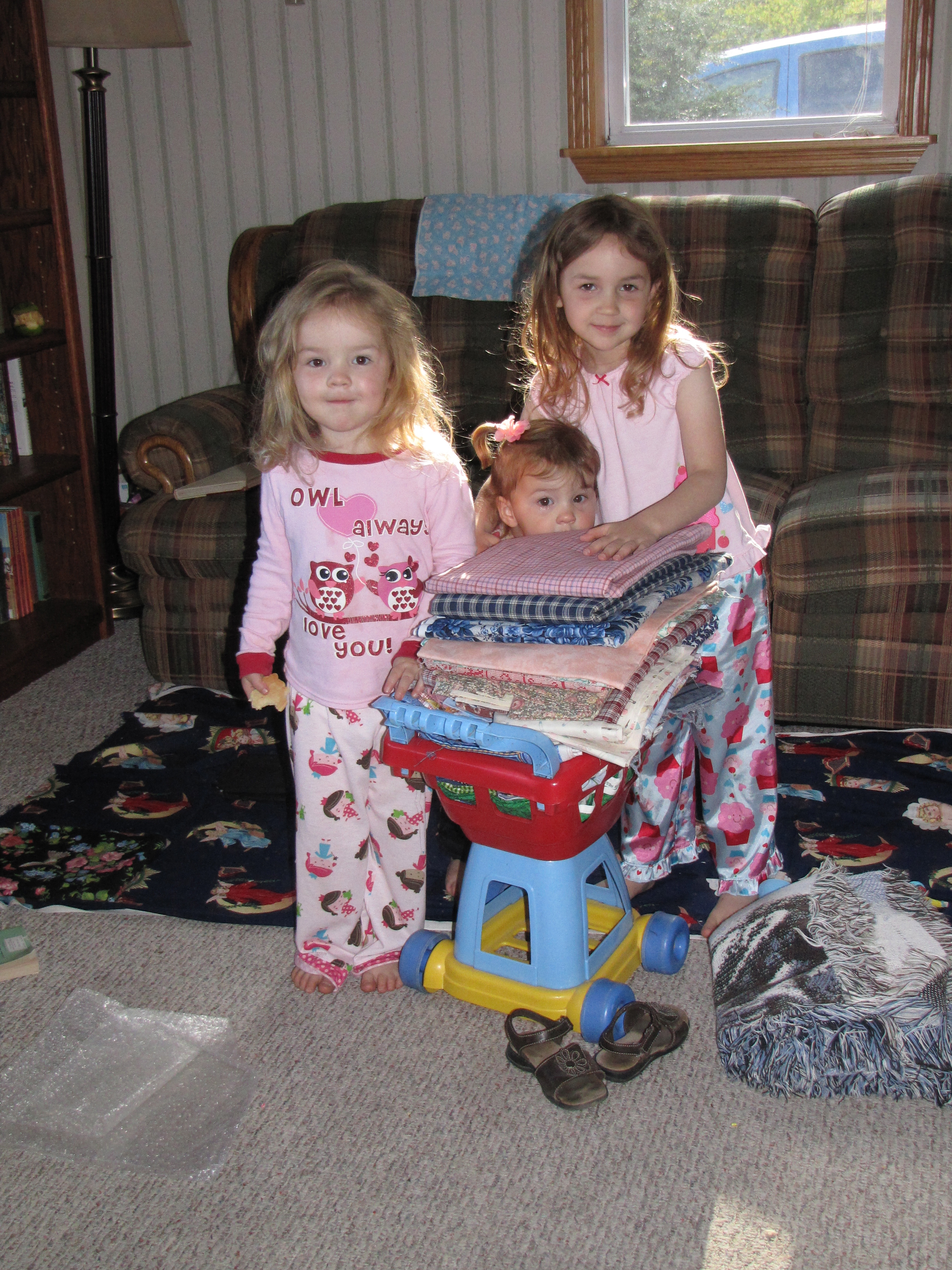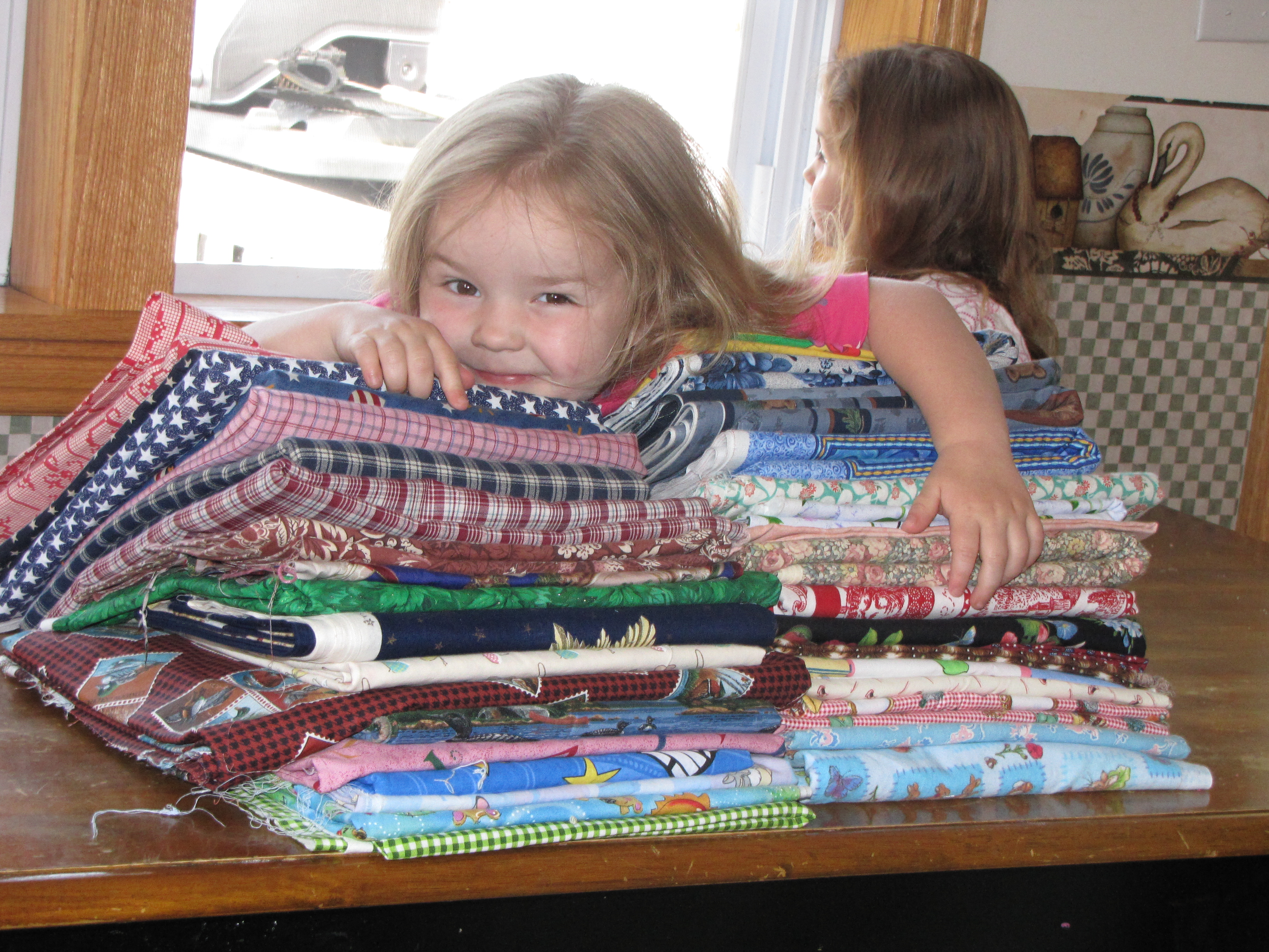 But I have all this fabric, which cancels out all the rushing and an ugly driver’s license photo. It really was a good day after all. My girls play shopping with the stack. I promise you, they have never seen me load up my cart like this.