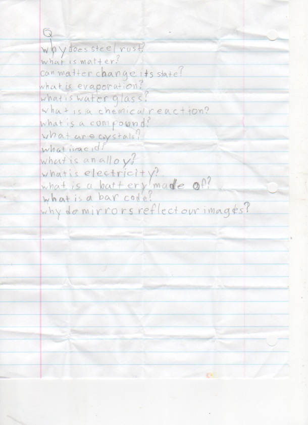 “Well, I have some questions, but most of them I already know the answers to.” And that was all he would say. A little later he came to me with a paper, all folded up. “Here, Mama.”