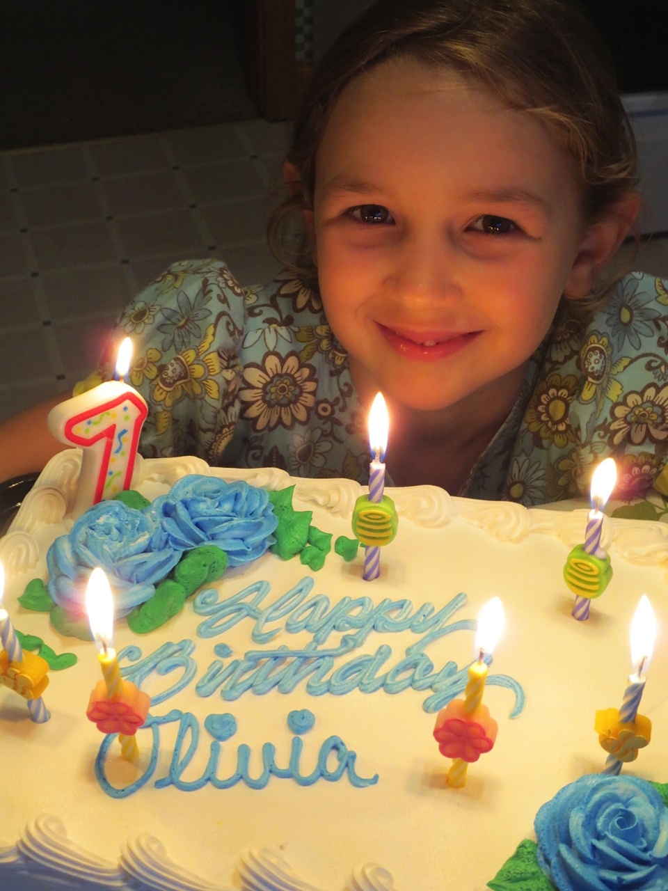 This is my little Livvy girl, my fragile child with the determined, sturdy spirit. She is smiling funny so that her very loose tooth doesn’t show. No matter how much we tried to persuade her that the tooth should stay back with six, she insisted that it needed to dangle along to seven.