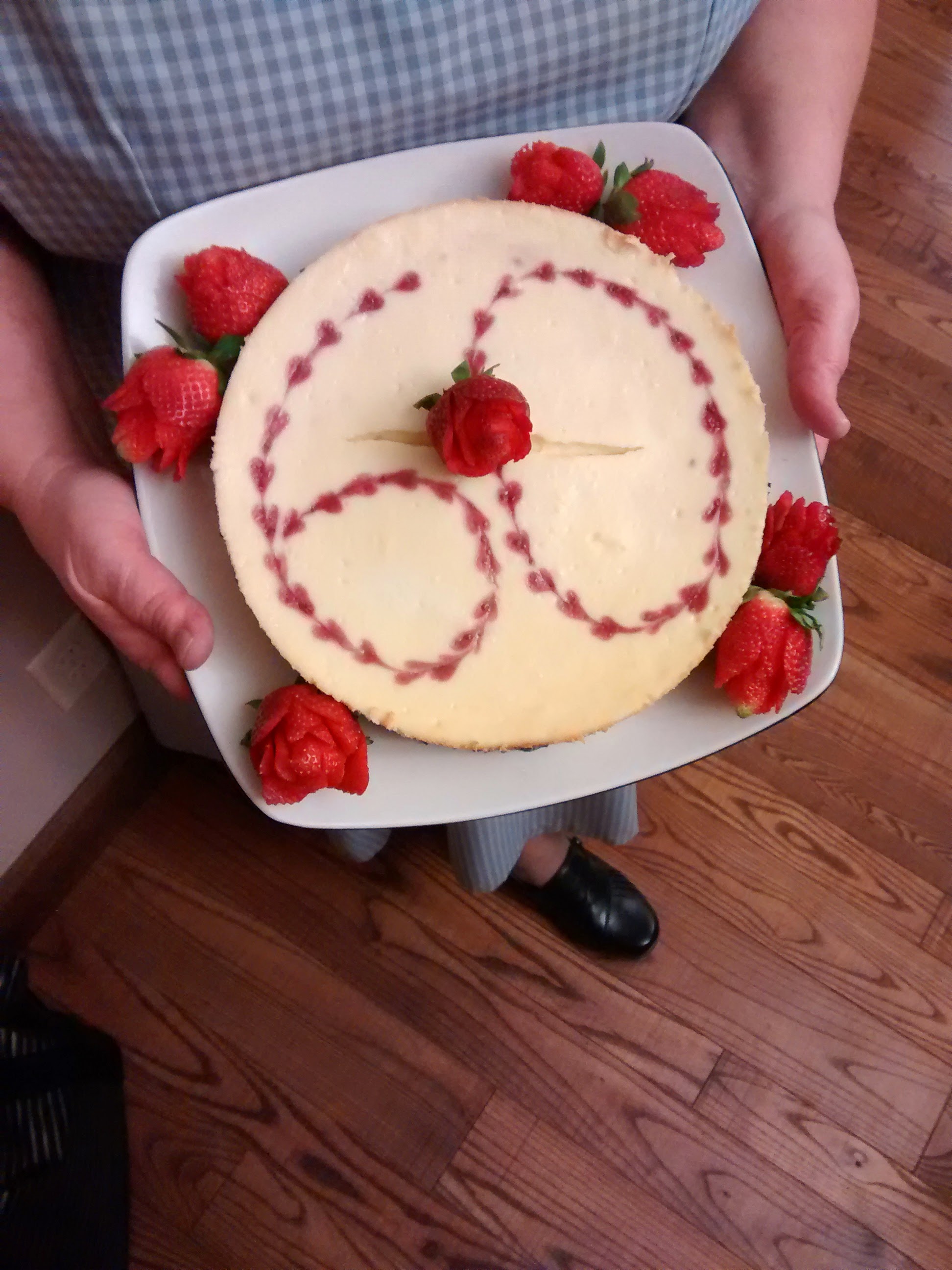 My girls and I took Mom out to Ohio to rendezvous with her Indiana sisters. We all partied at my sister’s (and her long-suffering husband’s ) house. Rachel had made such a beautiful cheesecake with raspberry filling.