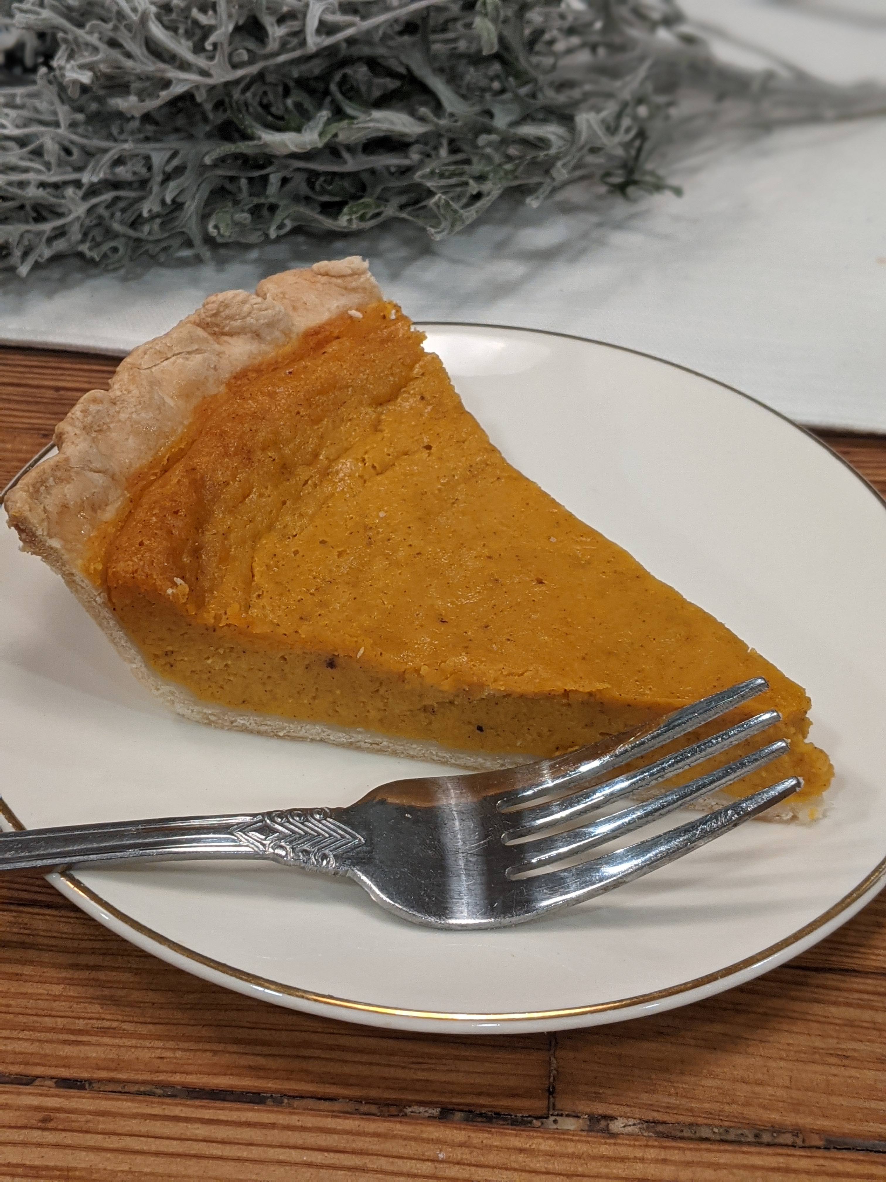 If she makes faux turkey and dressing, there will need to be mashed potatoes and pumpkin pie. She has seven potatoes in her pantry, and that is considered a good sign. She has a large sweet potato that she needs to use, so she cooks it to make sweet potato pie, AKA “almost pumpkin pie.” While the sweet potato is cooling, she makes a quick grocery run for cranberries and pie crusts and chicken stock for gravy.
