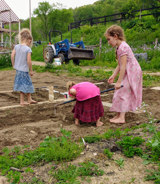 They were ecstatic and immediately scrounged boards to create borders between their plots. I figured I should help them understand how to give plants room, and not to shade little plants with big ones, etc., but I was out of stamina by the time I had my own rows planted. I shut up my inner critic and handed them the box of leftover seeds. Then I went to sit in the shade, determined not to interfere unless they asked for help. It was surprising what all they had picked up in their short years of helping me plant. They already knew about making rows and planting big seeds deeper than tiny seeds.
