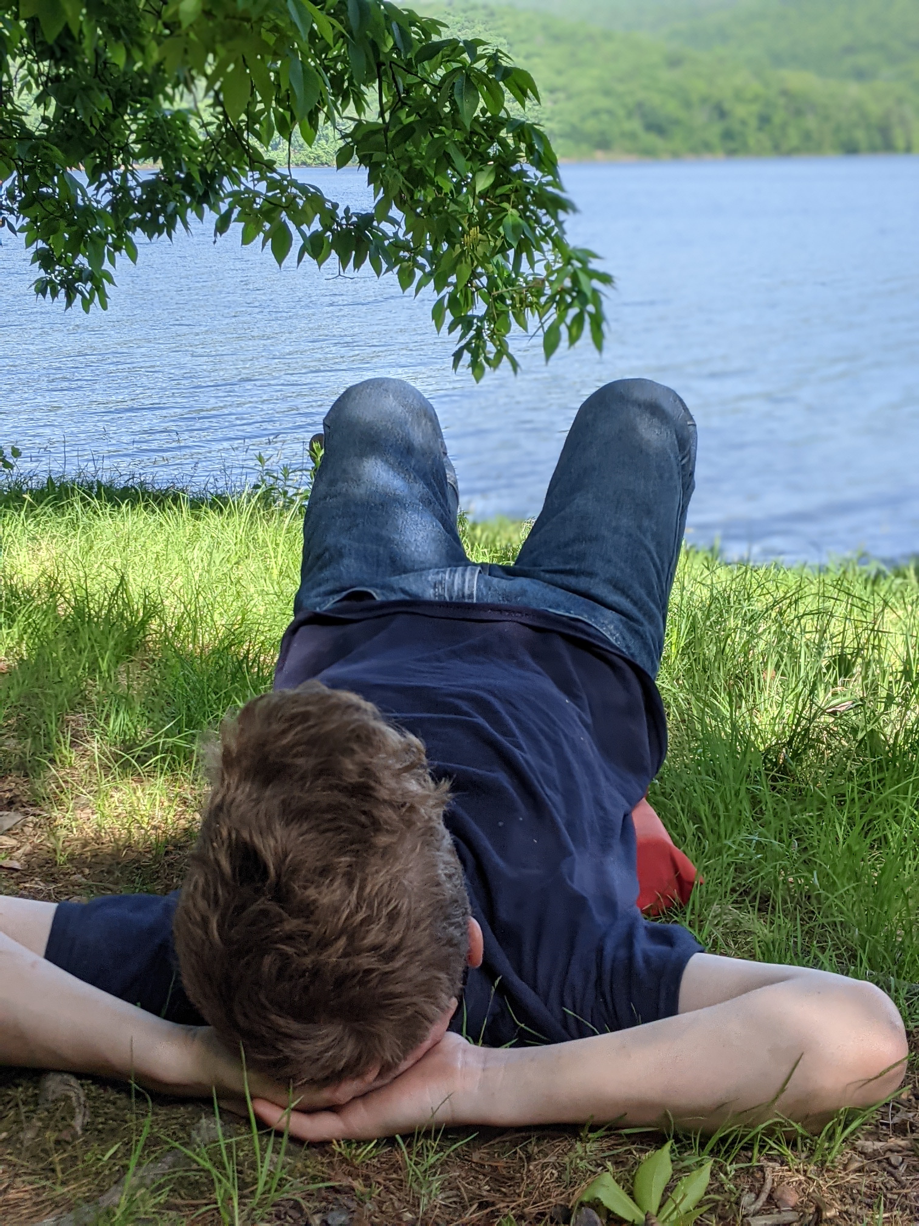 Once we got to our site in a small cove, life was peaceful, optimum for fishing, reading in hammocks, and eating everything out of the food bag until there was nothing left but limp cheese sticks and granola bars that nobody liked. It’s funny how much we love camping, yet how much we rhapsodize about having showers and real beds when we get home. For us to see our children recharge by appreciating a sunset over water, or admiring tiny snakes and shiny beetles, or smacking their lips about campfire oatmeal without any milk… Well, it makes slightly deflated air mattresses feel just fine.