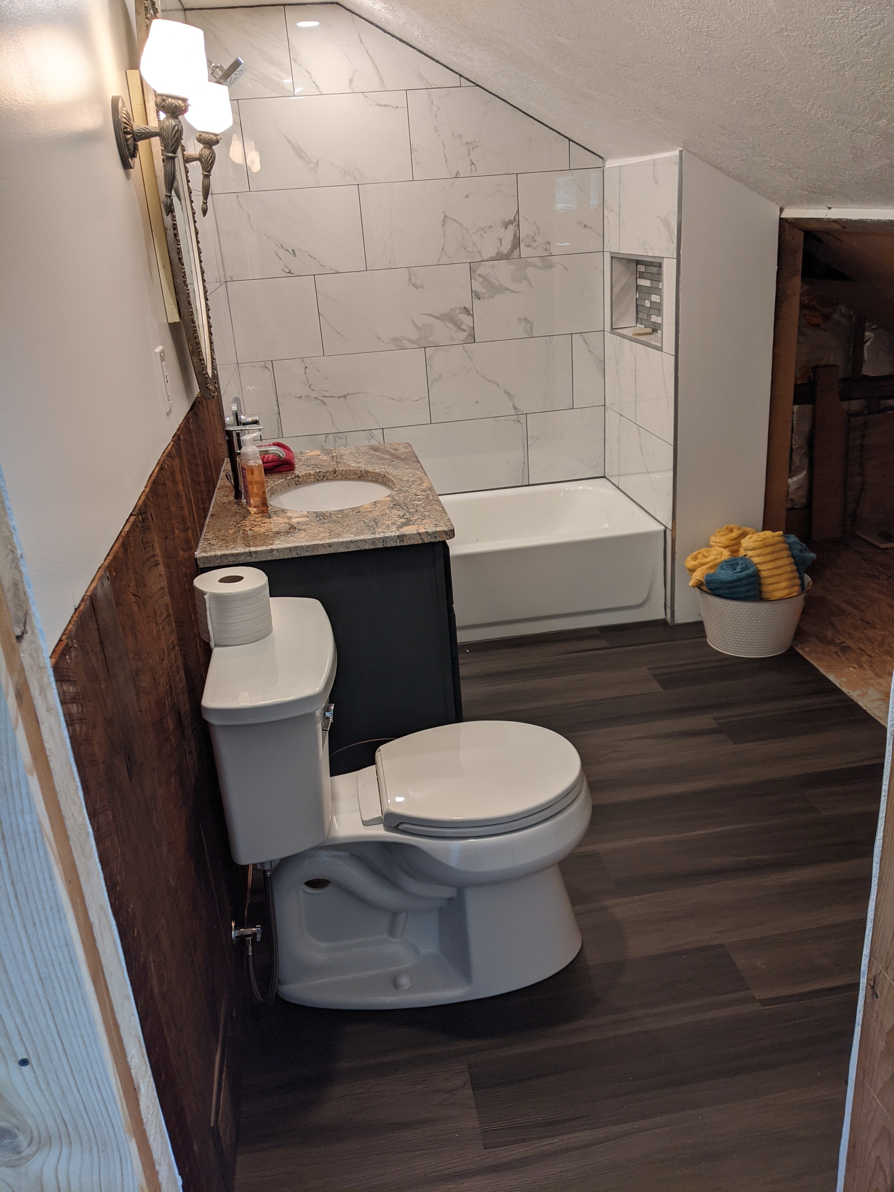 We’re still working on some house projects. Just before the 4th, we got our upstairs bathroom functional. I really wanted to have it done before Gabriel’s family came to surprise him for his birthday, so I dropped hints and finally just said that somebody is coming and I want the bathroom ready for guests. That worked, but he also figured out who was coming. I learned a few things through that project, like how to grout tile and lay vinyl plank floor, and even how to install wainscoting while my husband is at work. How am I in my 40’s and never knew that I could do this stuff? Probably because my man is the one who does anything DIY in the house. But with YouTube tutorials, and proper tools, there are few projects that a woman can’t tackle. I do know my place; I left the plumbing strictly alone, and I won’t be installing the door or the trim. I’m not detail-oriented enough for work like that.