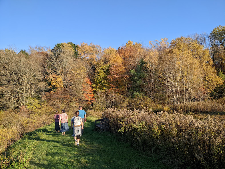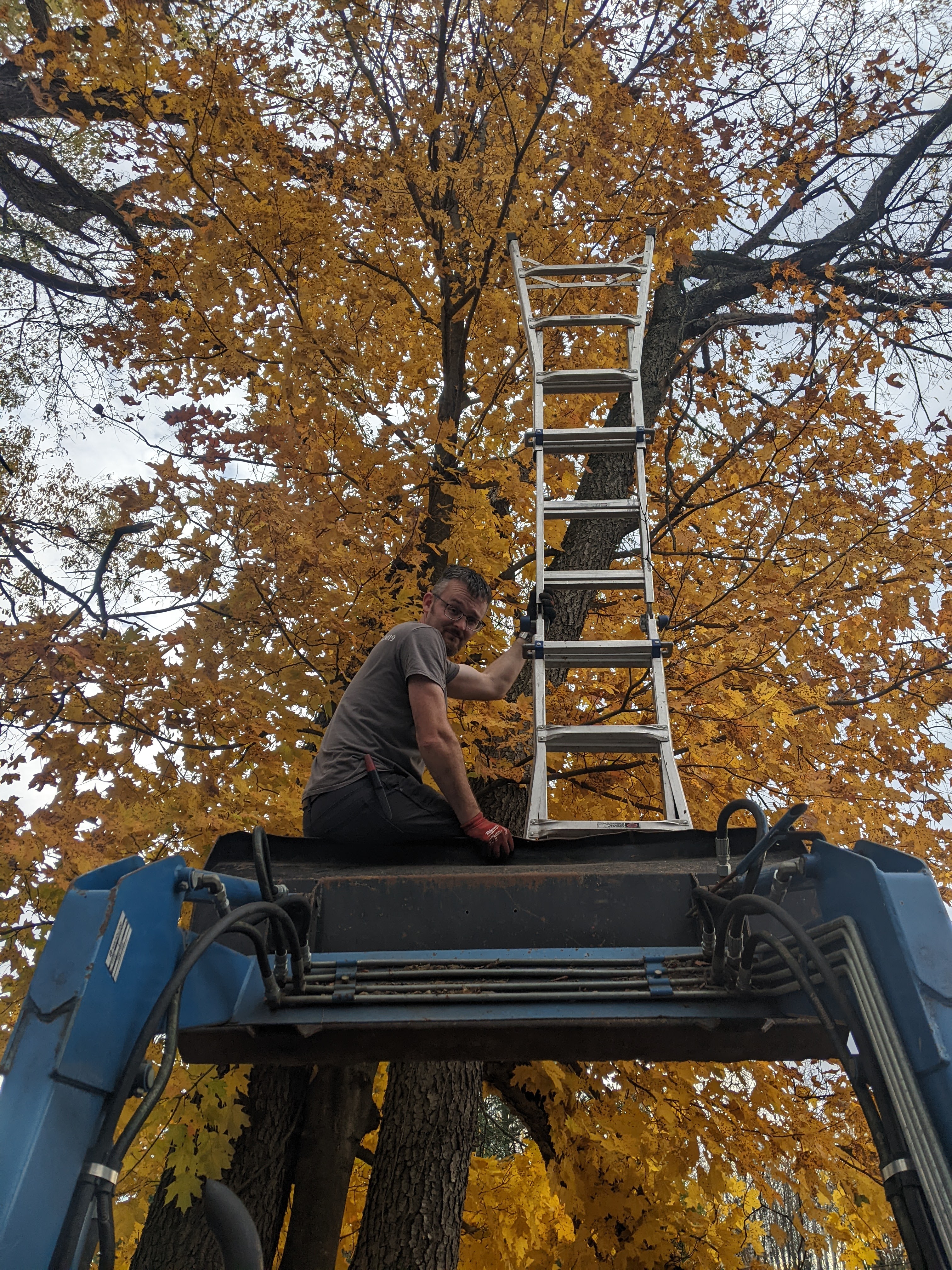 We still have hickory and oak leaves sifting down. I don’t like these tough ones for mulch because they don’t break down much over winter. We resort to blowing them to the edge of the woods. There is a long caterpillar of leaves all along the periphery of the lawn.