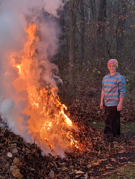The last fall ritual that marks the end of the garden work for me is digging up the dahlias, hosing them off, dividing the tubers, and storing them for winter. That is not my favorite chore, but I waited for an unseasonably warm day, which made it feel more like a privilege. All that is left to do is mulching the beds for winter. We have been carrying the leaves from our neighbor’s maple tree over to our garden. Bill does not like mess of any kind, so he diligently mows in circles and blows his leaves into piles every day. If we don’t get them picked up that day, he tarps the pile so they don’t blow around. The girls haul them in an old sheet and dump them on the garden. Everybody wins. Well, the girls feel like they get the short end of the stick, but I remind them that for ten minutes of minimal effort, they can bless the socks off an elderly neighbor, and that matters.