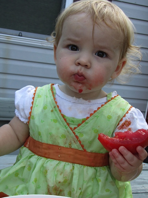 …To eat the first ripe tomato in my garden. One that is bigger than a cherry so I can slice it for my sourdough toast. I do not remember ever waiting this long, and if checking on them could produce results, I would have had slices of vine-ripened tomato weeks ago. They are large and green, very green, but apparently we have not had enough hot sunshine yet. Even the dog who loves tomatoes has become impatient. Yesterday she picked an enormous slicer, very green, and brought it guiltily to me.